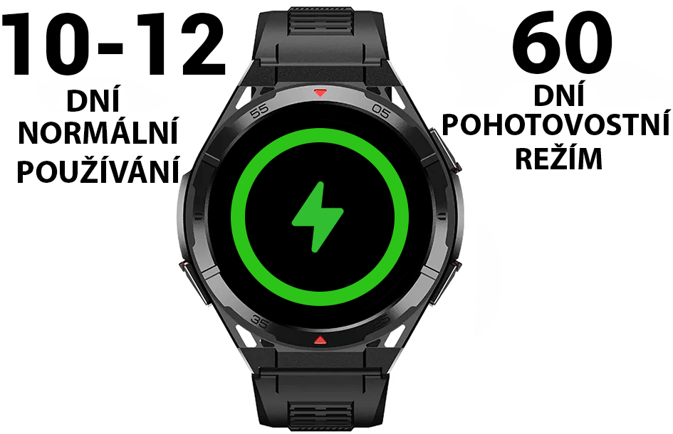 Výdrž hodinek je vynikající – na jedno nabití vydrží až 10-12 dní. V pohotovostním režimu se výdrž prodlouží až na 60 dní. Takže se nemusíte bát častého nabíjení a můžete si užívat všechny funkce naplno.