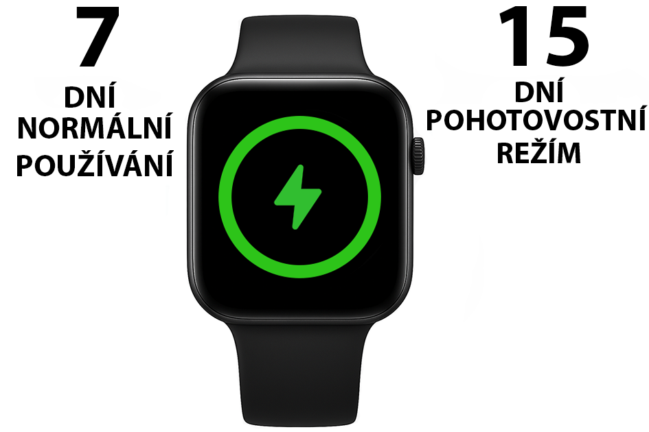 Výdrž hodinek je vynikající – na jedno nabití vydrží až 7 dní. V pohotovostním režimu se výdrž prodlouží až na 15 dní. Takže se nemusíte bát častého nabíjení a můžete si užívat všechny funkce naplno.