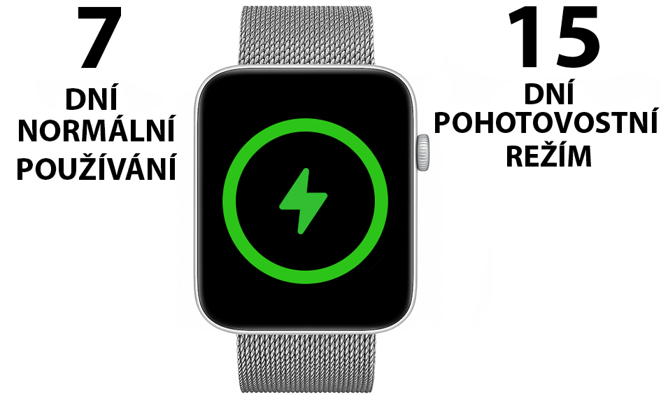 Výdrž hodinek je vynikající – na jedno nabití vydrží až 7 dní. V pohotovostním režimu se výdrž prodlouží až na 15 dní. Takže se nemusíte bát častého nabíjení a můžete si užívat všechny funkce naplno.