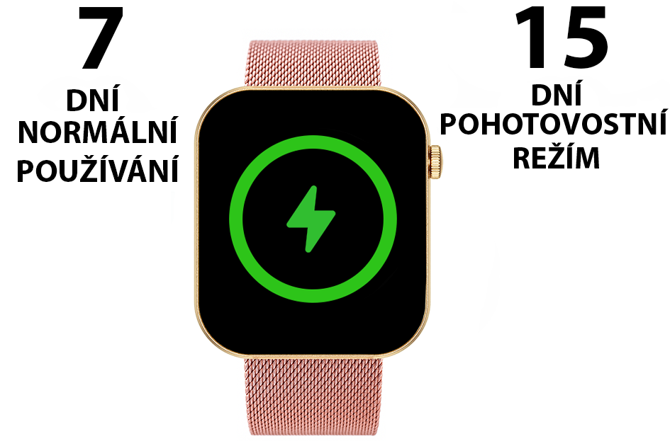 Výdrž hodinek je vynikající – na jedno nabití vydrží až 7 dní. V pohotovostním režimu se výdrž prodlouží až na 15 dní. Takže se nemusíte bát častého nabíjení a můžete si užívat všechny funkce naplno.