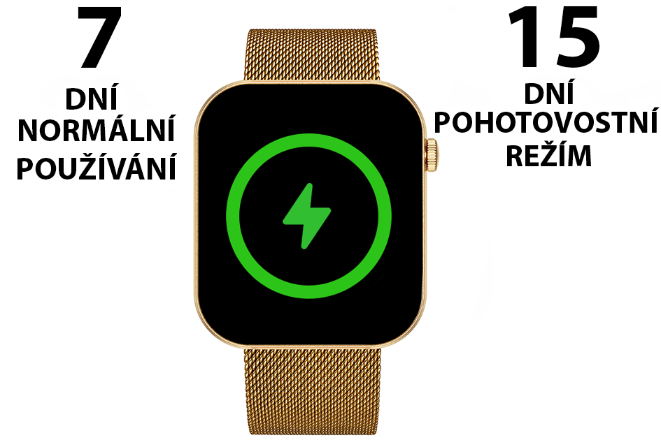 Výdrž hodinek je vynikající – na jedno nabití vydrží až 7 dní. V pohotovostním režimu se výdrž prodlouží až na 15 dní. Takže se nemusíte bát častého nabíjení a můžete si užívat všechny funkce naplno.