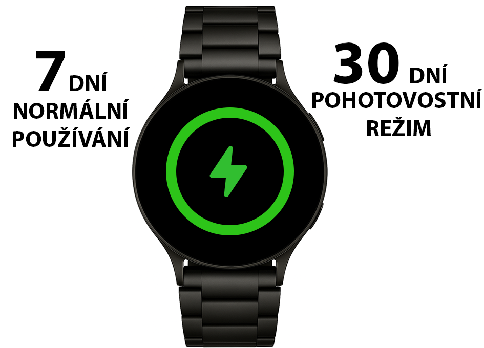 Výdrž hodinek je vynikající – na jedno nabití vydrží až 7 dní. V pohotovostním režimu se výdrž prodlouží až na 30 dní. Takže se nemusíte bát častého nabíjení a můžete si užívat všechny funkce naplno.