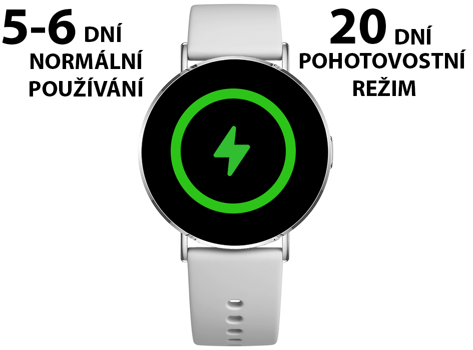 Výdrž hodinek je vynikající – na jedno nabití vydrží až 5-6 dní. V pohotovostním režimu se výdrž prodlouží až na 20 dní. Takže se nemusíte bát častého nabíjení a můžete si užívat všechny funkce naplno.